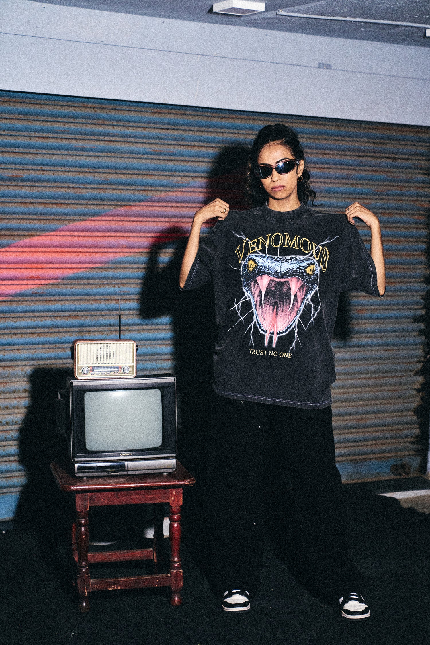 The Venomous Tee embodies raw power and danger, featuring a striking, rogue design of a deadly snake poised to spread its venom. Made from a soft, subtle fabric, it offers an effortlessly comfortable fit that moves with you. The sleek, edgy graphic and smooth material come together to create a perfect blend of bold street style and casual ease. Whether you’re making a statement or just embracing your fierce side, this tee brings attitude and versatility to any streetwear look.