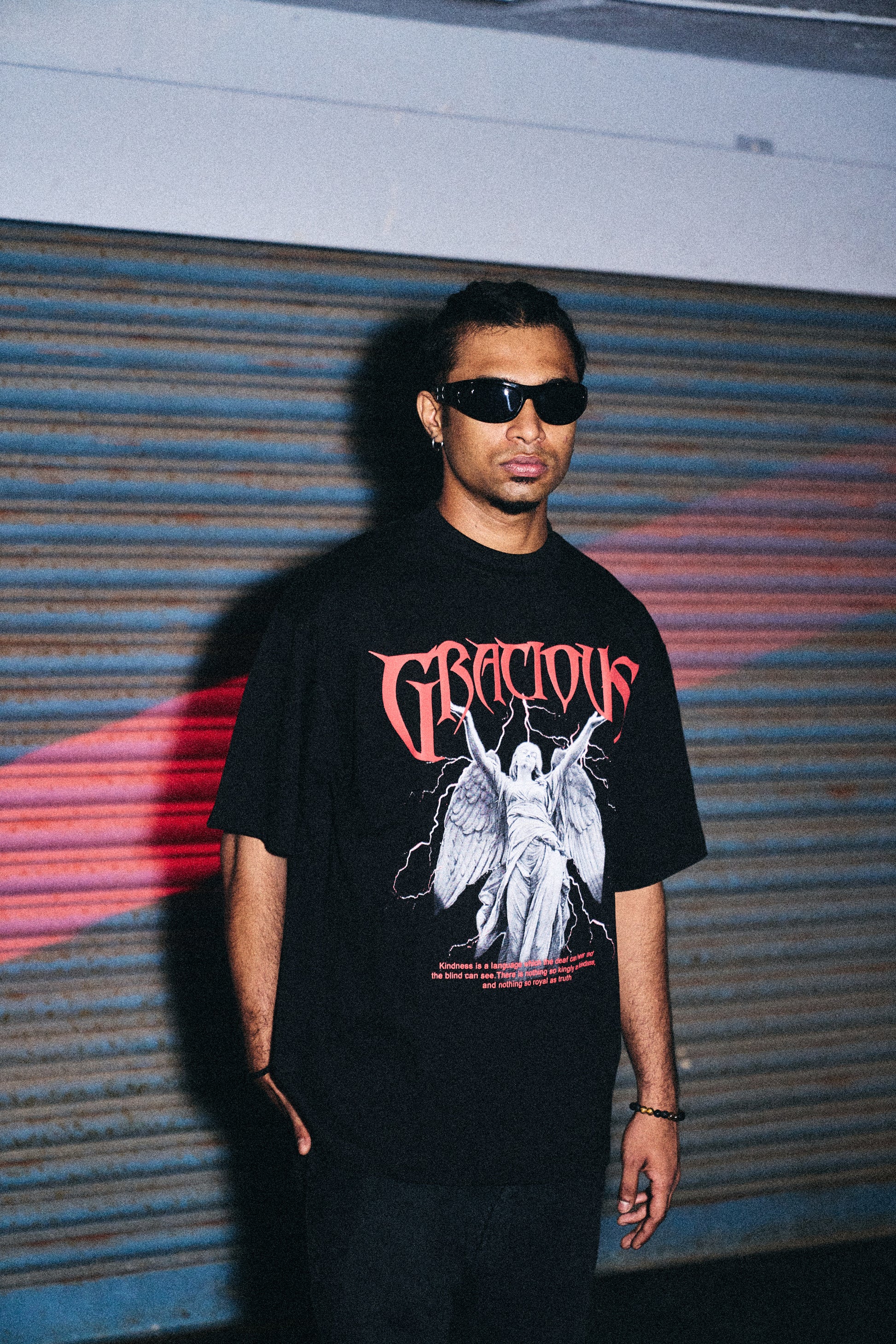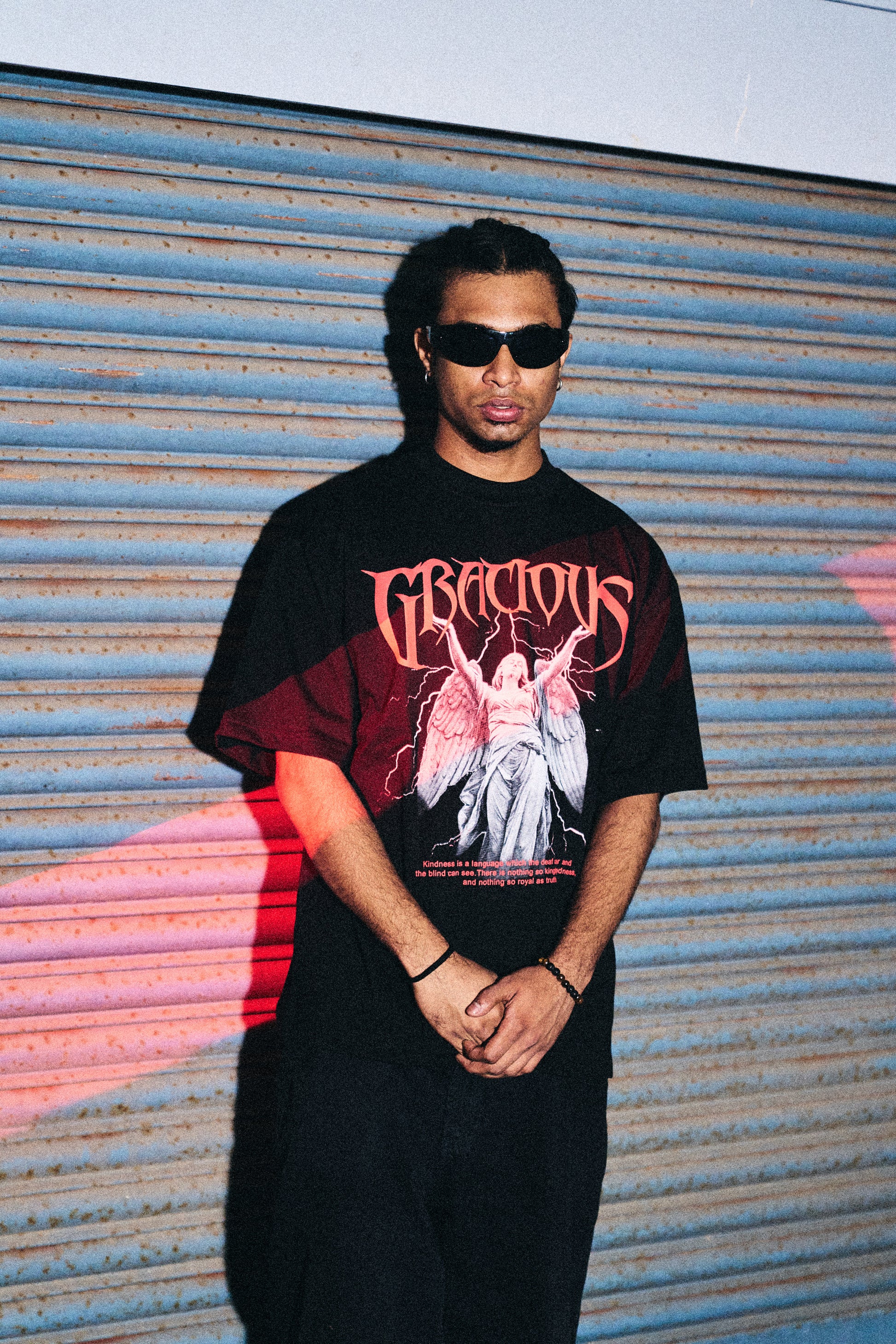 The Gracious Tee exudes an angelic, graceful vibe with its soft, ethereal design that evokes a sense of calm and beauty. Crafted from a lightweight, breathable fabric, it offers a relaxed, effortless fit that drapes perfectly on the body. The simple yet elegant style seamlessly merges with streetwear, adding a touch of serenity to your urban wardrobe. Ideal for those who appreciate both comfort and subtle sophistication, this tee is the perfect blend of ease and high-end street style.